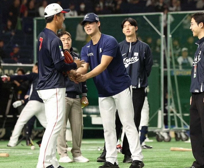 侍ジャパンVS韓国、突然の友好シーンが話題 「何語で話してるか気になる」