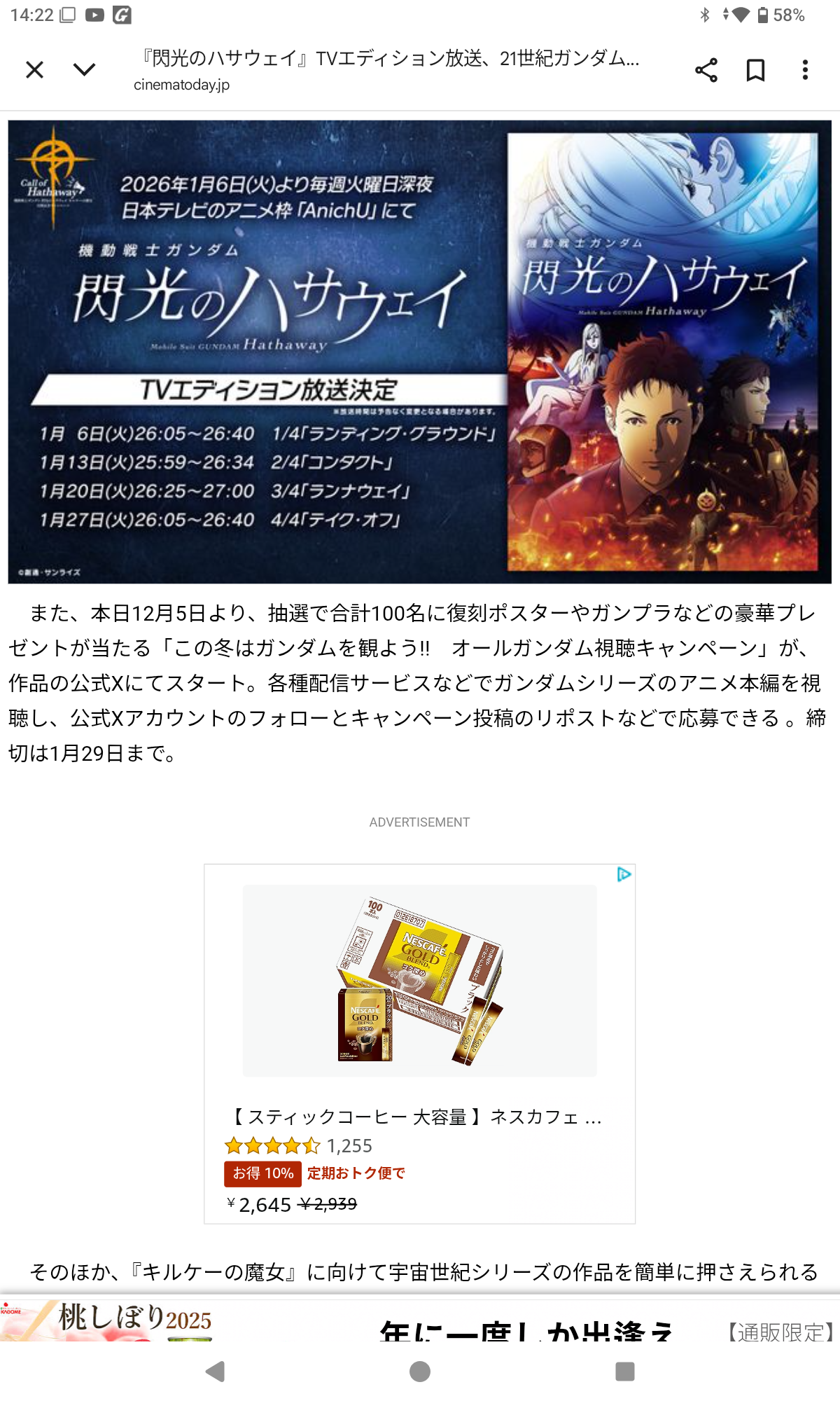 、『機動戦士ガンダム 閃光のハサウェイ』TVエディション(全4話)を、1月6日より毎週火曜日の深夜、日本テレビのアニメ枠「AnichU」にて放送……分割するくらいなら連続放送せいやレス28件省略。全て読むには返信ボタンを押してください。