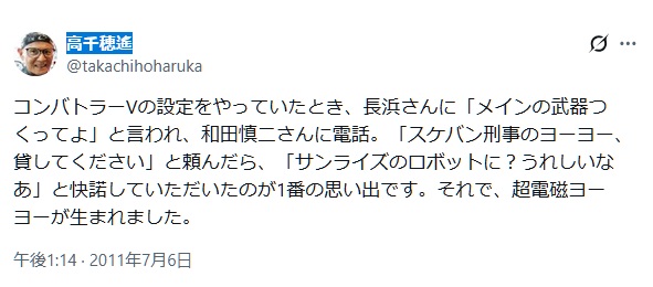 | … | 36無題Name名無し 25/11/29(土)03:27:16 IP:153.216.*(ocn.ne.jp)No.1801951+ 1764354436730.jpg-(102296 B) >高千穂遙が、その画像では無断借用したとしてる一方、Xアカウントでは和田慎二に電話をかけて快諾してもらったとなっている |