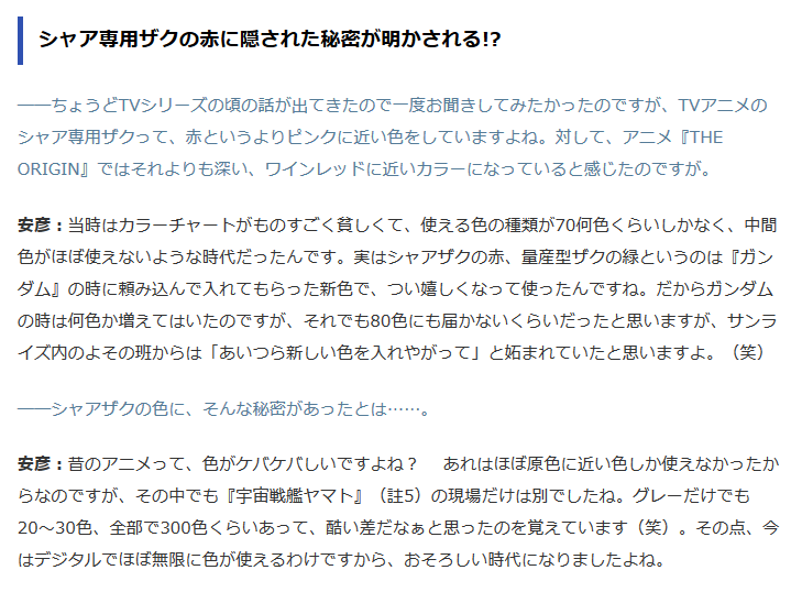 | … | 93無題Name名無し 26/02/16(月)03:42:42 IP:220.156.*(vmobile.jp)No.1806382+>監督と直で話してアニメの設定を提案するような(RX-78とかそうだよね)アニメ誌相手で |