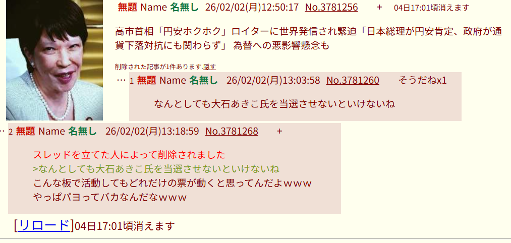 | … | 1無題Name名無し 26/02/11(水)21:04:12No.3782651そうだねx3 1770811452536.png-(178071 B) 「なんとしても大石あきこ氏を当選させないといけないね」 |