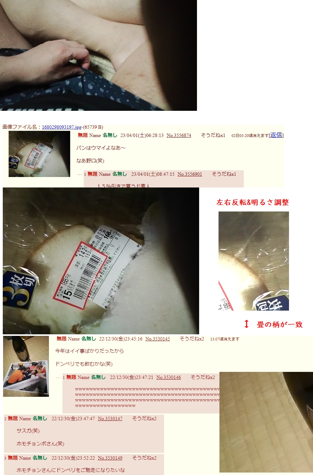 過去のホモチョンの投稿と畳のタイプが同じ事を覚えていたネトウヨに指摘され無事特定される