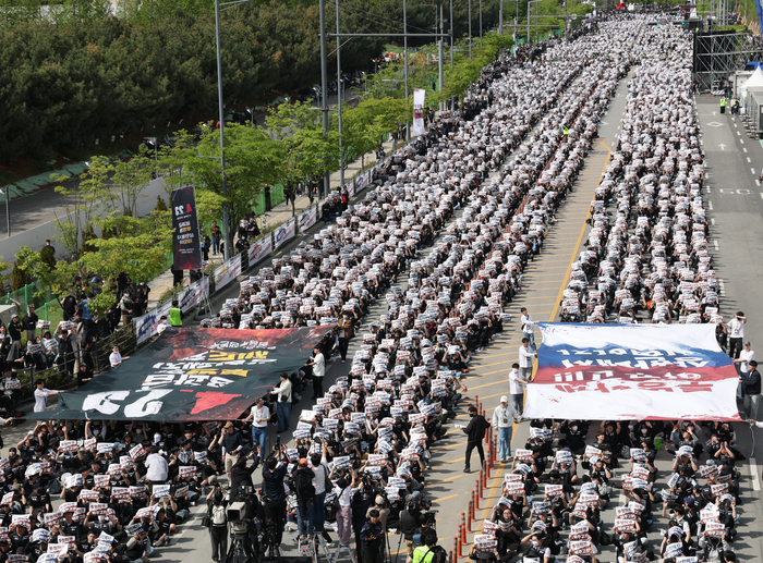 韓国サムスン、従業員数万人が抗議