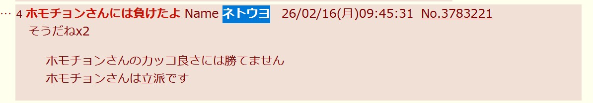 | … | 3どうやらこいつがネトウヨらしいwwwName名無し 26/02/17(火)08:38:59No.3783370+ 1771285139981.jpg-(42554 B) 要するにネトウヨというコテがあって |