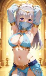 | … | 40無題Name名無し 26/02/18(水)21:18:50No.97087+ 1771417130544.jpg-(8389 B) 1girl, breasts, solo, smile,navel, looking at viewer, armpits, stomach, see-through, detached sleeves, cleavage, see-through sleeves, dancer, jewelry, closed mouth, harem outfit, arm up, bare shoulders, skirt, circlet, arms up, midriff, long sleeves, indoors, blush, cowboy shot, bracelet, neck ring, revealing clothes, gold trim, standing, underwear, panties, candle, choker, armlet, blue panties, necklace, crop top, halterneck, puffy sleeves, gem, nipple slip ,face veil,dance,, See-through bura, |