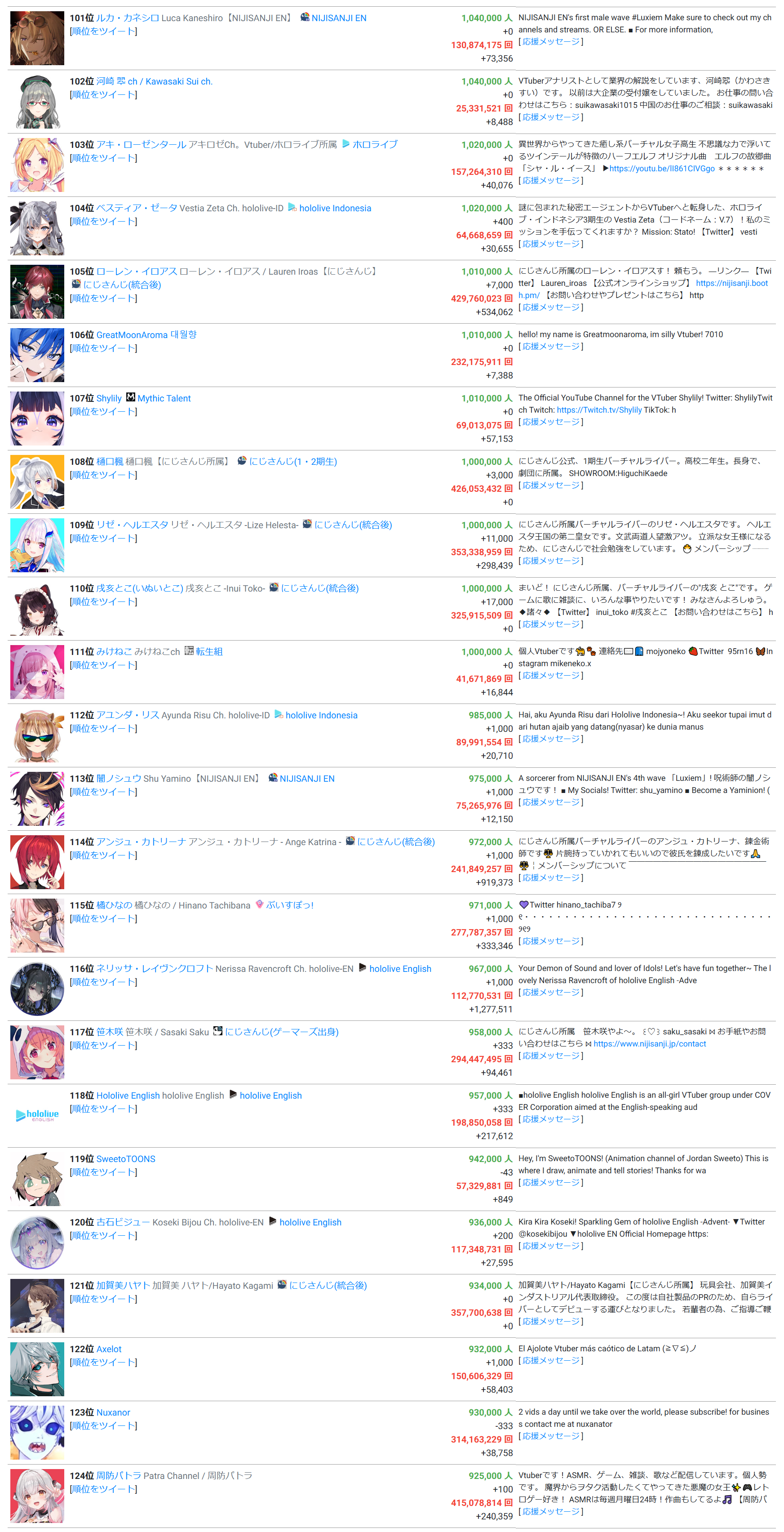 | … | 6無題Name名無し 26/02/23(月)16:58:21No.97229+https://playboard.co/en/youtube-ranking/most-superchatted-all-channels-in-japan-weekly |