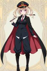 | … | 4無題Name名無し 26/02/25(水)04:39:23No.97311+ 1771961963870.jpg-(8295 B) black boots, black cape, black hat, black jacket,knee boots, cape, closed mouth, hat, jacket, long sleeves, material growth, military hat, military jacket, military uniform, necktie, peaked cap, red cape, red necktie, two-sided cape, two-sided fabric,baggy pants, riding crop, |