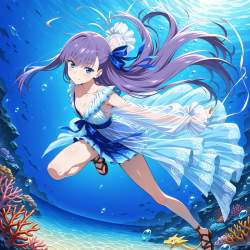 | … | 81無題Name名無し 26/03/06(金)04:39:21No.97668+ 1772739561526.jpg-(15609 B) ((alternate costume)), shrine maiden, non traditional clothes, sea dragon themed, water god, leviathan, flowing hair, white and blue dress, ocean background, coral reef, bubbles, translucent sleeves, mystical atmosphere, detailed dress, (ocean goddess), amaryllis print, underwater, magical lighting, fantasy, highly detailed, multiple tasel, hagoromo, translucent feathered robe, Ancient footwear, Leather sandals, clothes that represents the ocean, |