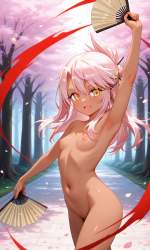 | … | 13無題Name名無し 26/04/04(土)23:10:39No.98791+ 1775311839318.jpg-(8798 B) 1girl,solo,cherry blossoms forest,red kabuki makeup(kumadori), nude, fan dancing,motion line, petals dancing in the wind, illuminating the scene like a myth. |