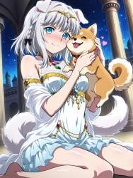 | … | 86無題Name名無し 26/04/09(木)06:11:36No.98961+ 1775682696609.jpg-(12967 B) 1dog, cute shiba inu dog, dog has a curly tail, fluffy orange and white coat, being petted by girl's hand, gentle petting on dog's head, smiling dog, happy expression, |