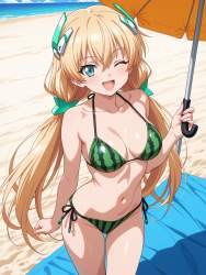 | … | 41無題Name名無し 26/04/12(日)04:33:21No.99098+ 1775936001412.jpg-(10867 B) 1990s \(style\),anime coloring,watermelon bikini,naughty smile,wink,open mouth,standing,sexy pose, beach towel, beach umbrella, beach, sky, summer, |