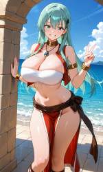 | … | 104無題Name名無し 26/04/26(日)04:45:55No.99656+ 1777146355095.jpg-(10545 B) alternate costume, (leina (queen's blade)), hairband, revealing_clothes, armor, sideboob, underwear, highleg, black panties, gauntlets, arm strap, belt, leather, buckle, loincloth, thigh strap, iron boots, holding sword, shield, |