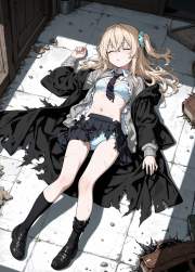 | … | 82無題Name名無し 26/02/01(日)04:52:17No.96599+ 1769889137648.jpg-(11806 B) unconscious,knocked out,limp body,torn clothes,exploding clothes,navel,bra,panties,parted lips,natural light, |