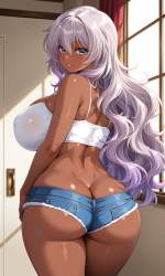 | … | 84無題Name名無し 26/02/01(日)04:58:50No.96601+ 1769889530735.jpg-(7897 B) Crop Top, extremely short denim micro shorts, high-cut, slender legs, (hot pants:1.3) ,big ass, dimples of venus,(butt crack:1.5), |