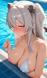 | … | 90無題Name名無し 26/02/02(月)04:51:38No.96619+ 1769975498958.jpg-(11869 B) bikini. shirts lift with mouth. standing. arms behind back. blush. scowl. half eyes. tilt head. sweat. from above. |