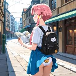 | … | 35無題Name名無し 26/01/31(土)03:38:34No.96530+ 1769798314380.jpg-(14802 B) casual clothes,skort,backpack,lift skirt,white panties,cat print, back-print panties, panty peek, |