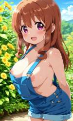 | … | 65無題Name名無し 26/02/01(日)04:33:50No.96582+ 1769888030982.jpg-(10093 B) 1girl, breasts, naked overalls, solo,overalls, sweat, outdoors, blush, looking at viewer, smile, sideboob, cloud, sky, arms behind back,leaning forward, open mouth, \bare shoulders, blue sky, hair between eyes, day, steaming body, no bra, flower, cleavage, cowboy shot, :d, overall shorts, areolae slip,nipples,from side, |