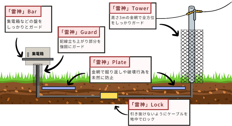 地中の配管に取り付けることで銅線の引き抜きにロックをかける新方式