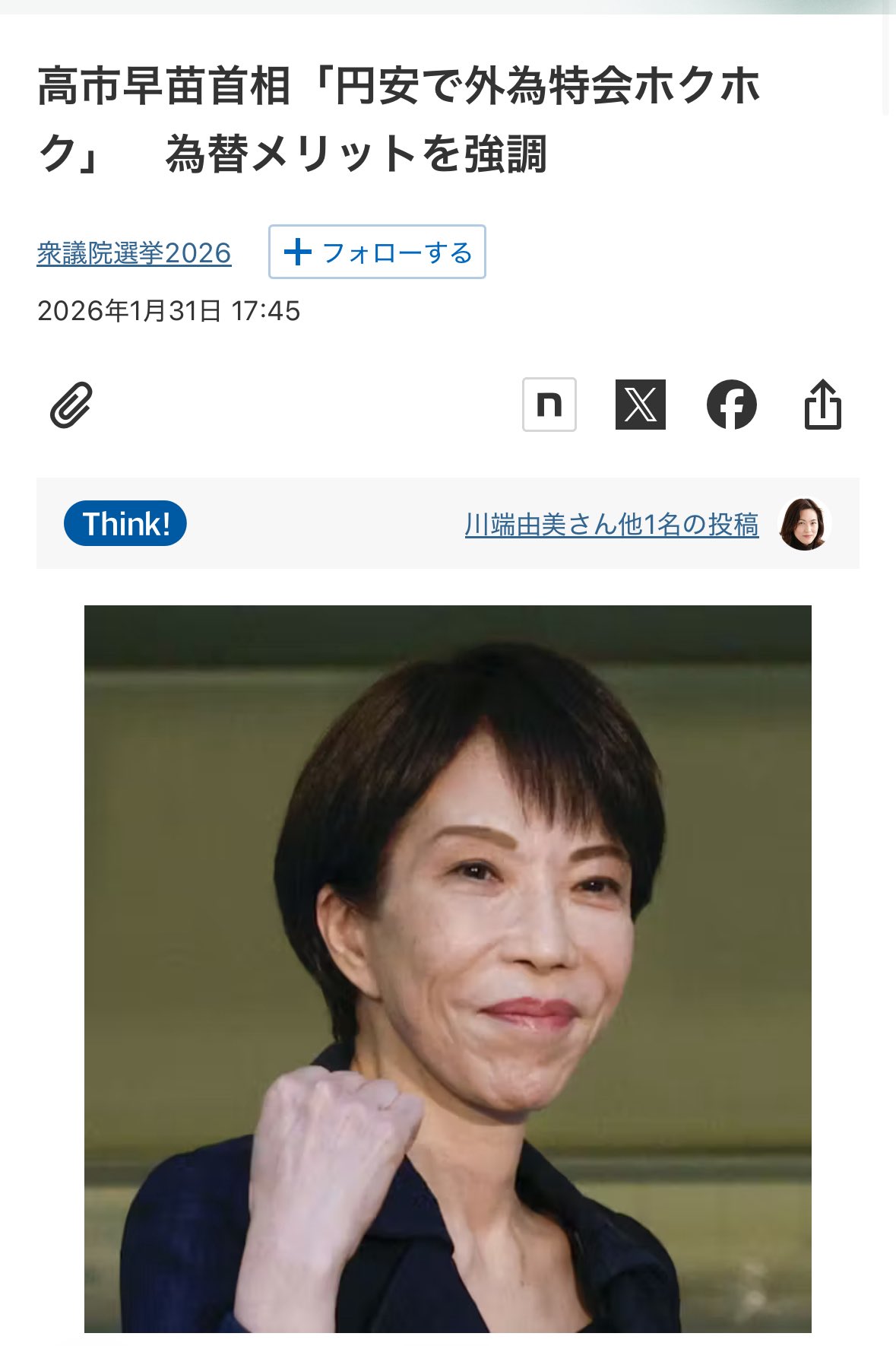 一方、高市氏は2月1日夜、Xに「昨日の個人演説会での私の為替に関する発言について、一部報道機関で誤解があるようです」と投稿し、発言の意図を釈明した。
