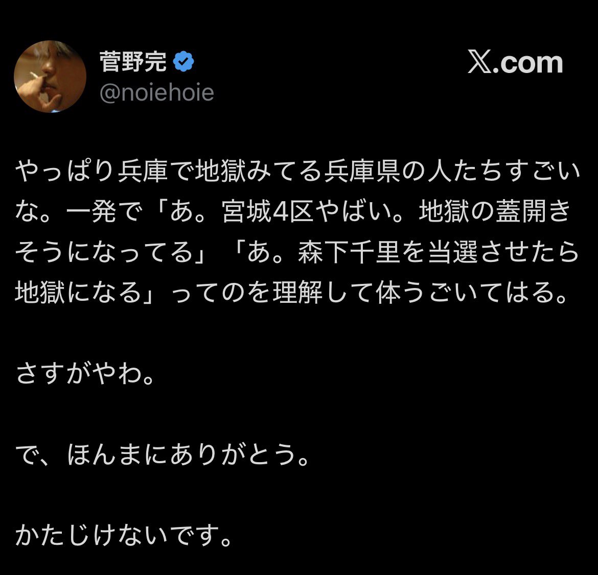 | … | 10無題Name名無し 26/02/07(土)19:50:03 IP:180.20.*(ocn.ne.jp)No.4391369そうだねx2 1770461403977.jpg-(44821 B) それ言ったらお宅の所の小西君は何で千葉県から出馬されてるんです?徳島出身ですよね彼 |