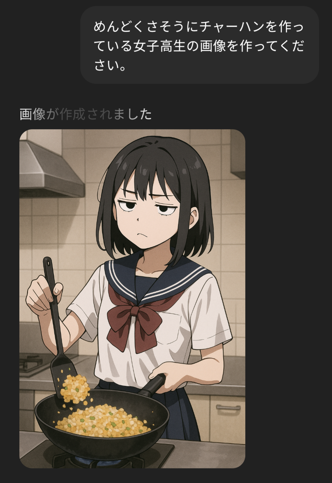 | … | 125/12/29(月)19:32:51No.76173399そうだねx9めんどくさそうにチャーハン作ってる女子高生kawaii |