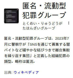 | … | 1126/02/24(火)07:19:03 IP:14.9.*(enabler.ne.jp)No.2325253+組織名やリーダーが明確ではなく、SNSで繋がり、使い捨ての実行役が次々と入れ替わるため、捜査が困難 |