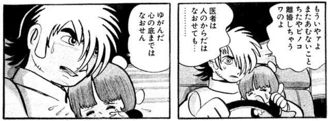 | … | 126/01/24(土)19:59:39 IP:61.211.*(starcat.ne.jp)No.2323085+ 1769252379347.jpg-(157079 B) "しかおちゃん"とは、漫画『ブラックジャック』ダーティジャックで、トンネル崩落事故で落石に直撃されて死亡した幼稚園児 |