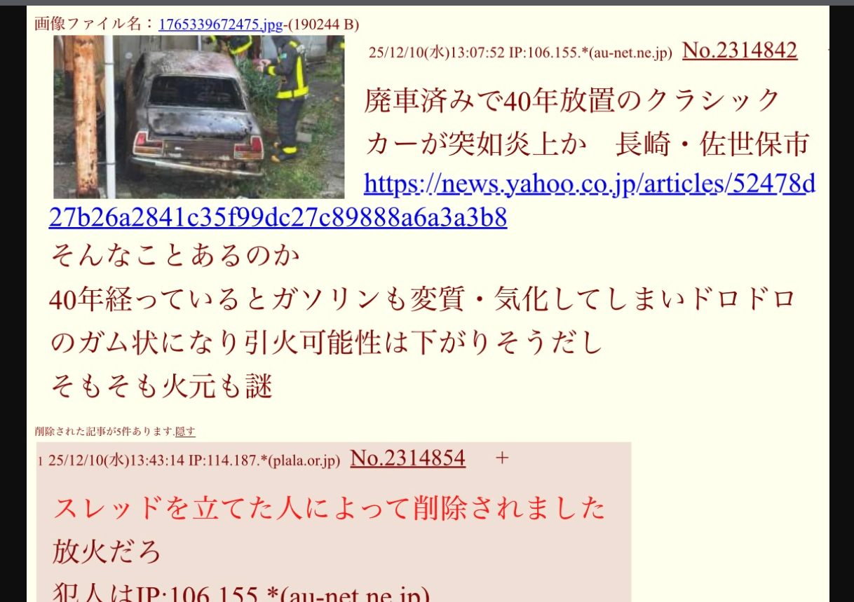 | … | 2325/12/11(木)05:01:32 IP:133.209.*(mesh.ad.jp)No.2315108+印刷だろうがスクショだろうがウザさはいっしょだよ神奈川。 |
