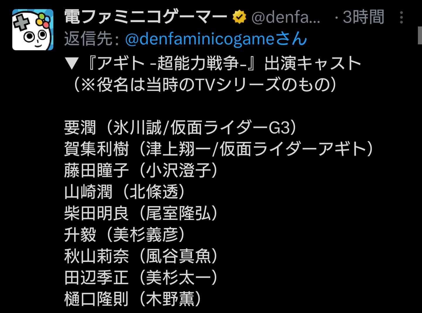 | … | 91無題Name名無し 26/01/27(火)15:14:53 IP:114.160.*(ocn.ne.jp)No.3062248そうだねx6既に仮面ライダーである男 津上翔一/アギト |