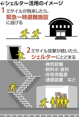 日本政府は、ミサイル攻撃や武力攻撃などの緊急事態に備え、地下シェルターの指定を強化し、日本の総人口の10%弱(約1千万人分)をカバーする計画を推進しています。レス4件省略。全て読むには返信ボタンを押してください。
