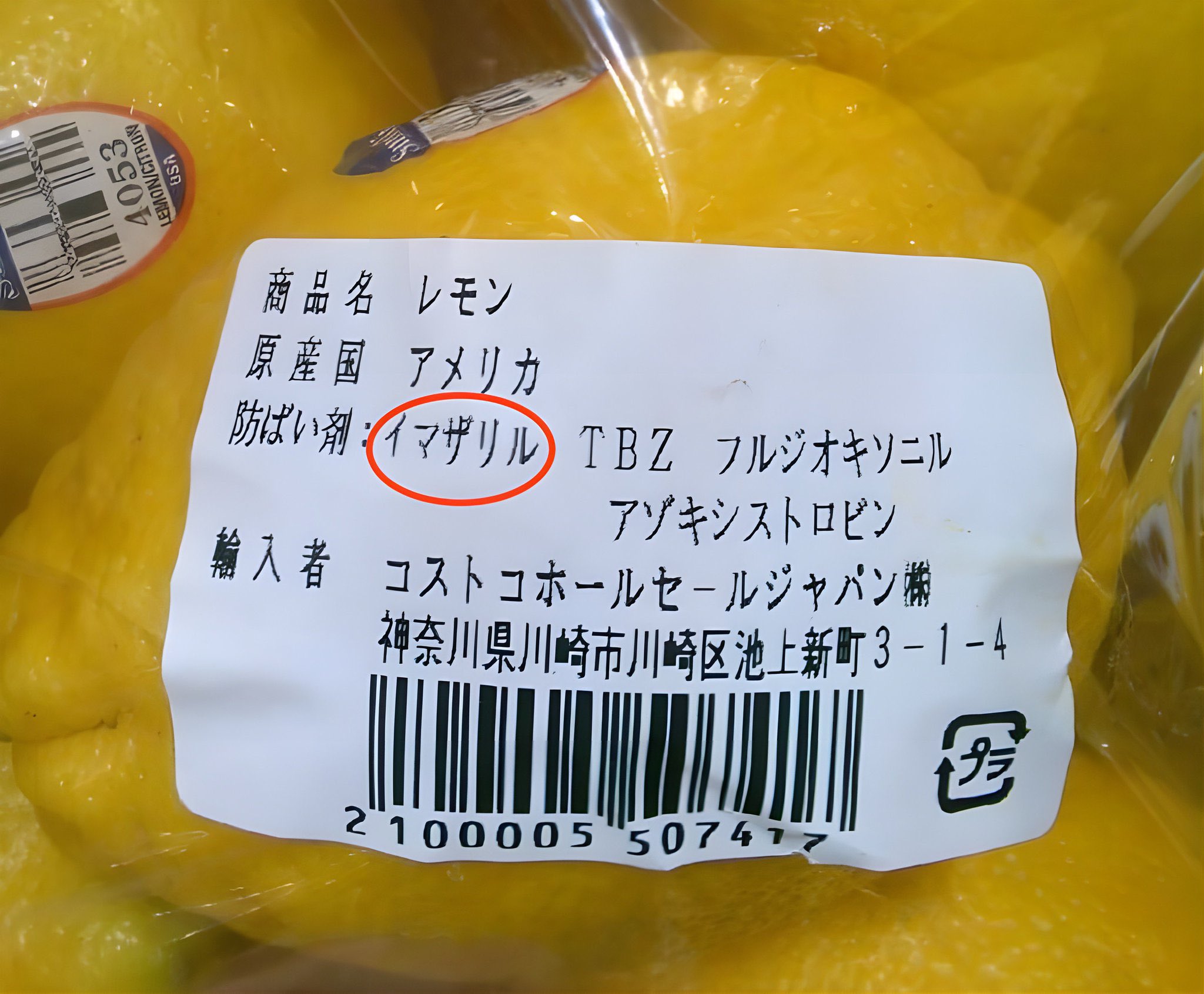 ・当時農薬や添加物として認可されていなかったイマザリルはアメリカの圧力により日本国内で使用が認められる事となった(1992年)