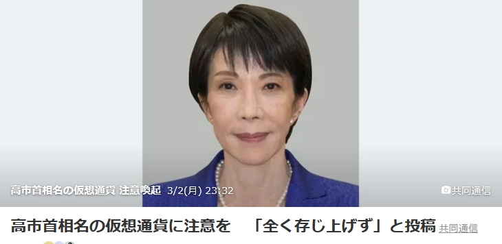 高市首相名の仮想通貨に注意を 「全く存じ上げず」と投稿レス2件省略。全て読むには返信ボタンを押してください。