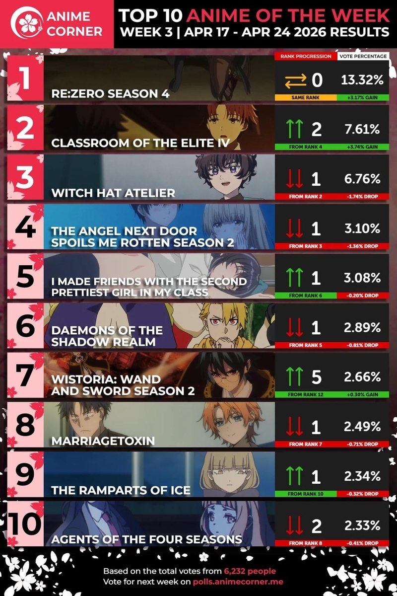 2026年春アニメ海外人気ランキング(3週目)レス2件省略。全て読むには返信ボタンを押してください。