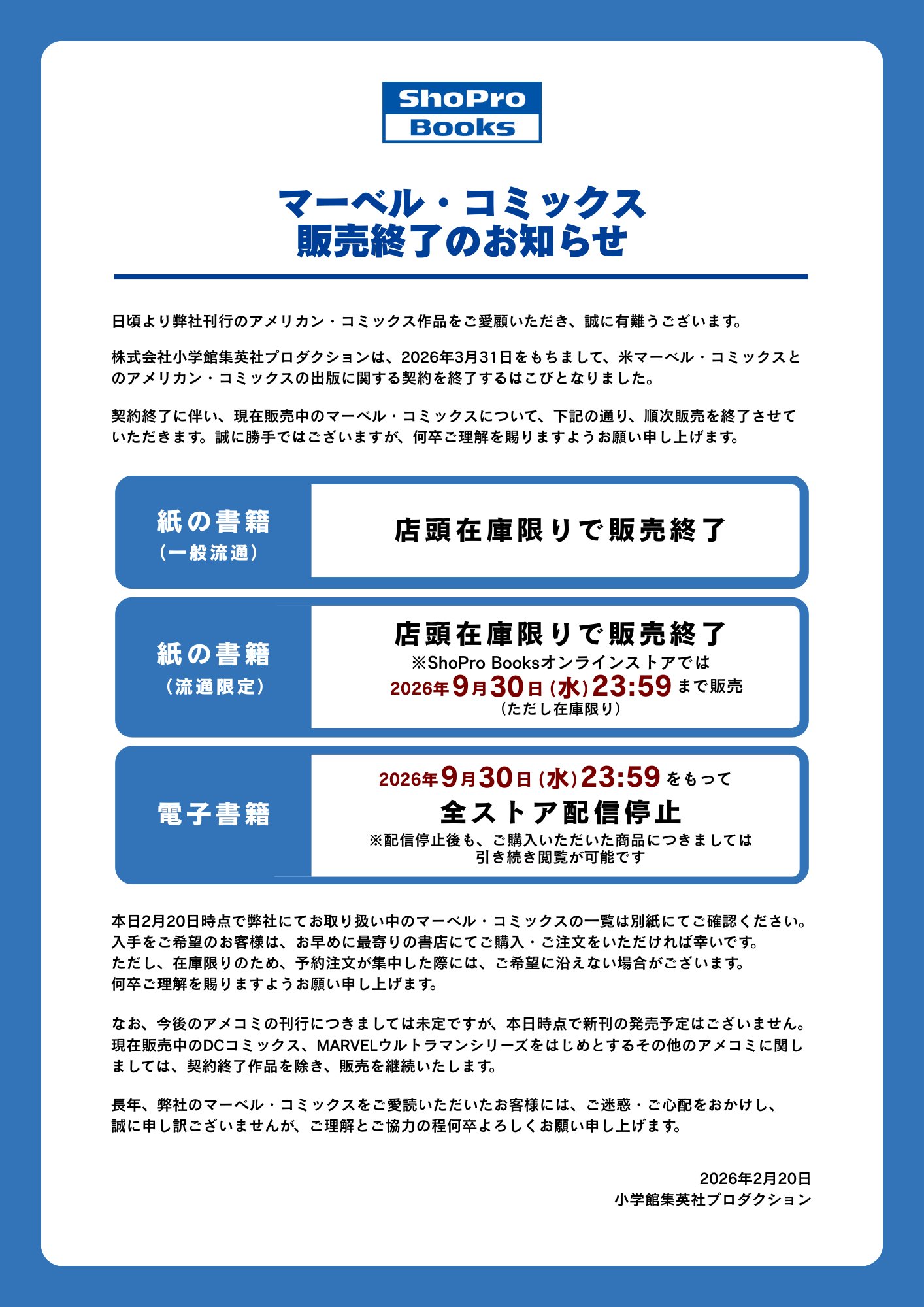 | … | 1無題Name名無し 26/02/20(金)19:58:52No.3398137+ヴィレッジブックスも無くなったしアメコミも売り上げ厳しいんだろうね |