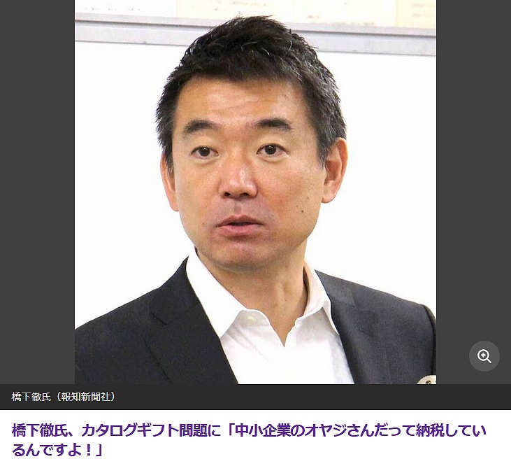 橋下徹氏、カタログギフト問題に「中小企業のオヤジさんだって