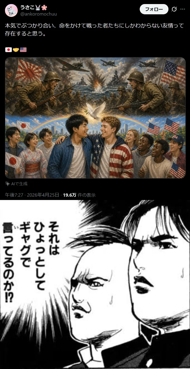 | … | 1無題Name名無し 26/04/27(月)06:47:33No.3430989+戦争をWBCかなんかと勘違いしてる |