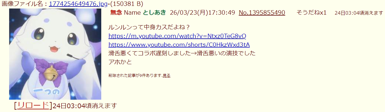 | … | 7無題Name名無し 26/03/23(月)15:33:59No.3413534+それはバカウヨをウンコから守る会への挑戦かね? |