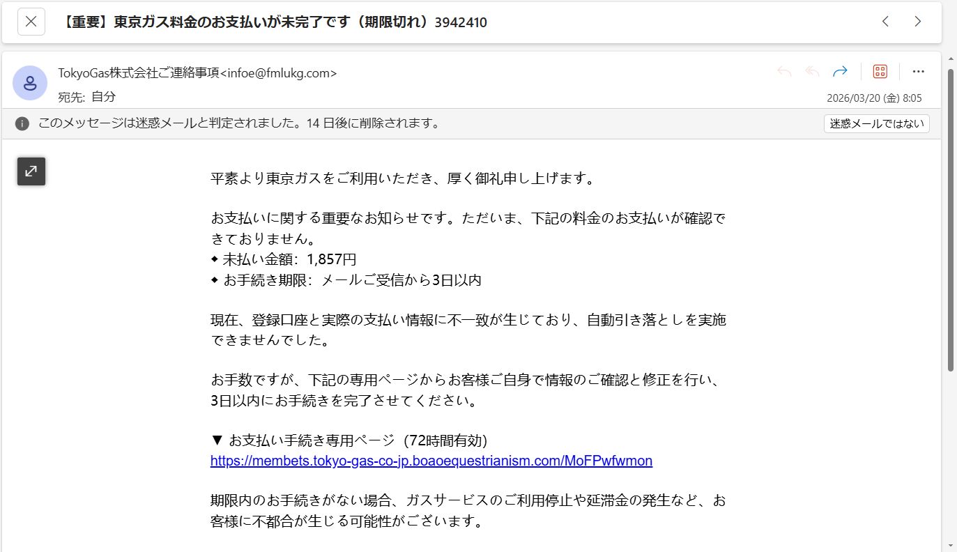 東京ガスから未払いのメールが来ちゃった
