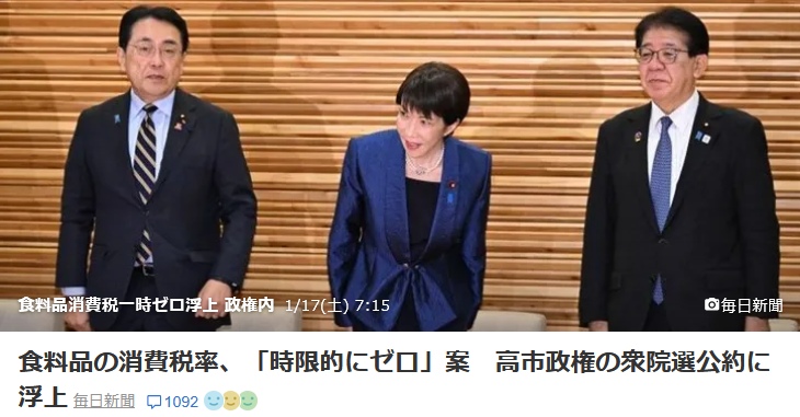 食料品の消費税率、「時限的にゼロ」案 高市政権の衆院選公約に浮上レス4件省略。全て読むには返信ボタンを押してください。