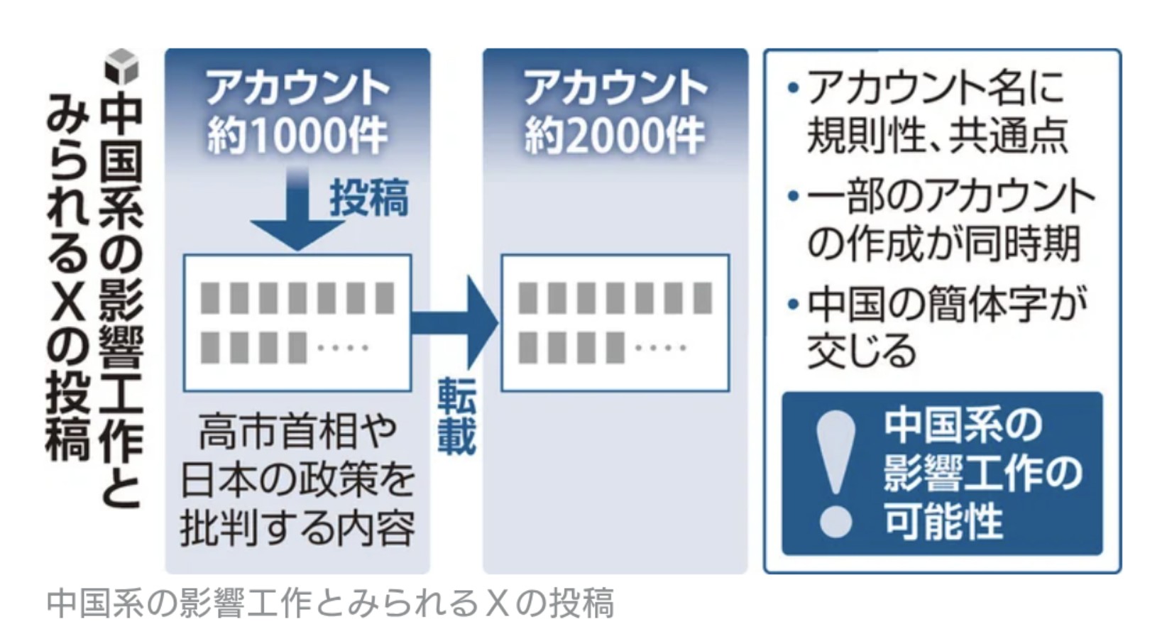 日本を批判するアカウント群3000件規模、X投稿・拡散…衆院選前から中国系の影響工作かレス5件省略。全て読むには返信ボタンを押してください。