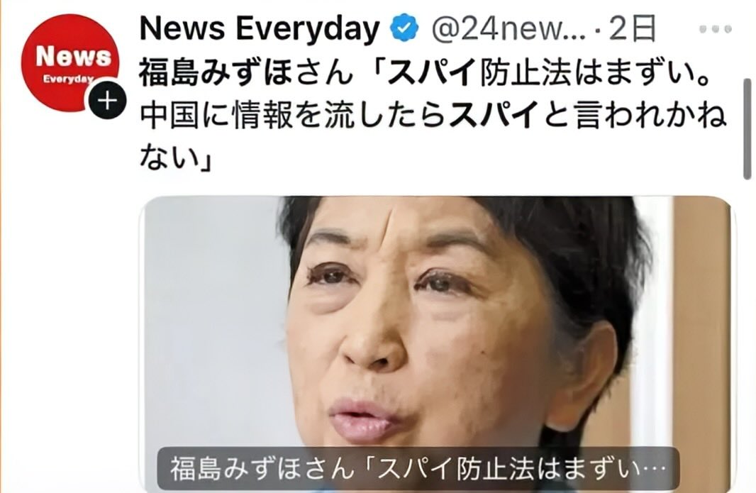 13年ぶりとなる社民党の党首選が4月6日に開票され福島瑞穂氏(70)が再選した。しかし、党再生への道のりは険しい。党首選の前には辺野古沖の転覆事故に関する服部良一幹事長(76)の発言が大炎上したが、その発言があれほど批判されてもなお、問題となった団体の活動を応援するかのようなメッセージを送っていたことが判明したのだ。