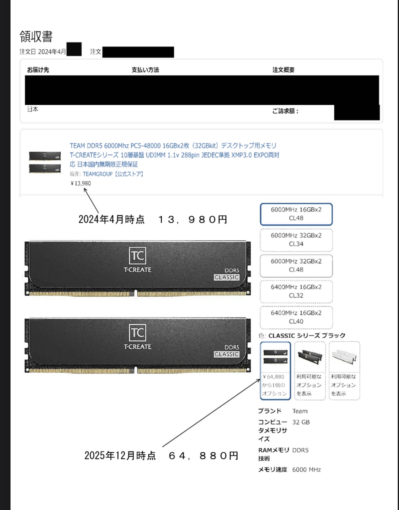 メモリーの高騰