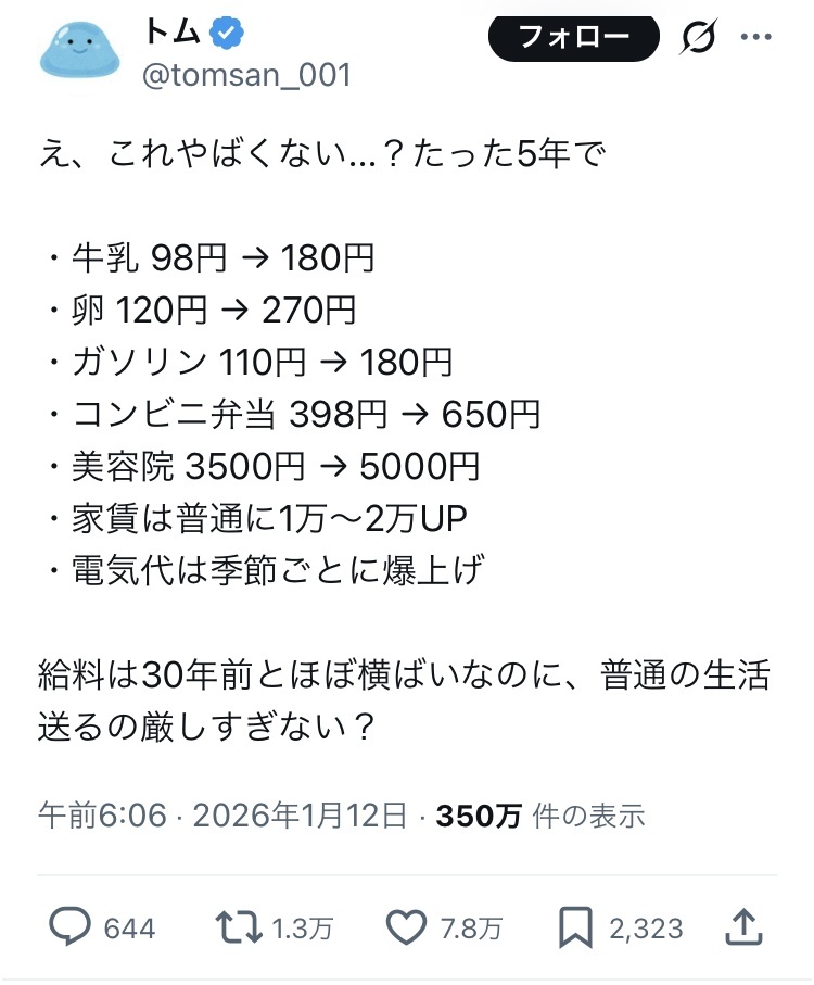 | … | 6無題Name名無し 26/01/14(水)21:58:44No.3379183+5年前に98円の牛乳ってどこで売ってたの? |