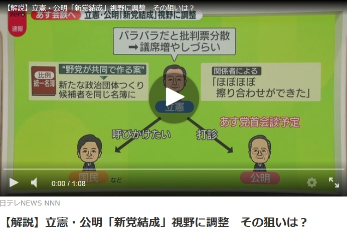 【解説】立憲・公明「新党結成」視野に調整 その狙いは?削除された記事が1件あります.見る
