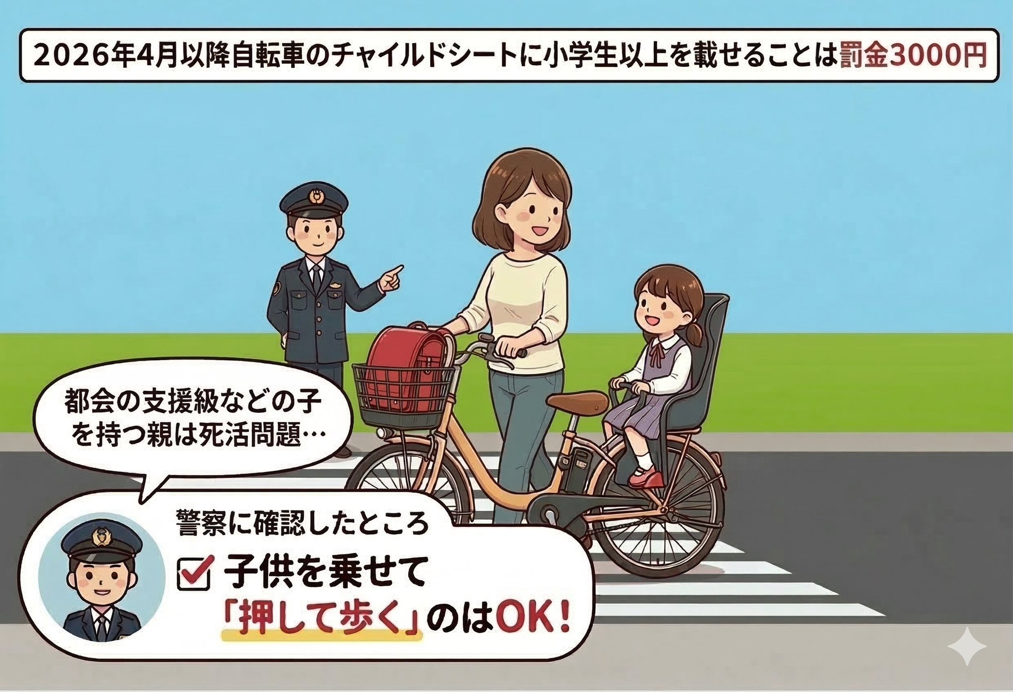 子供病院送るときとか自転車乗せてるだろ