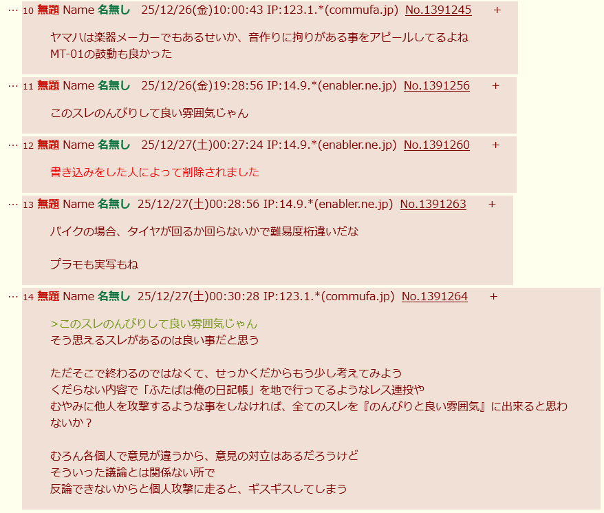 | … | 17なーNameなー 25/12/27(土)01:02:31 IP:14.9.*(enabler.ne.jp)No.1391268+なー |