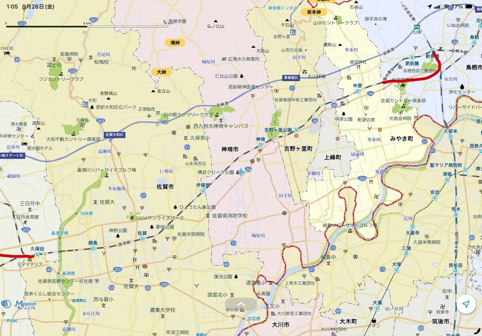 新鳥栖から新線を分岐、中原の手前くらいで既存の長崎本線ルートへ。