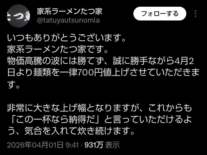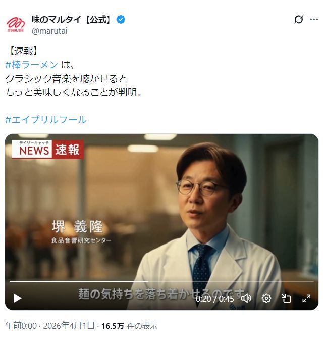 | … | 2無題Name名無し 26/04/07(火)05:25:50 IP:125.12.*(home.ne.jp)No.399284+ 1775507150053.jpg-(55788 B) どうやら毎年やってるらしいマルタイのエイプリルフール |