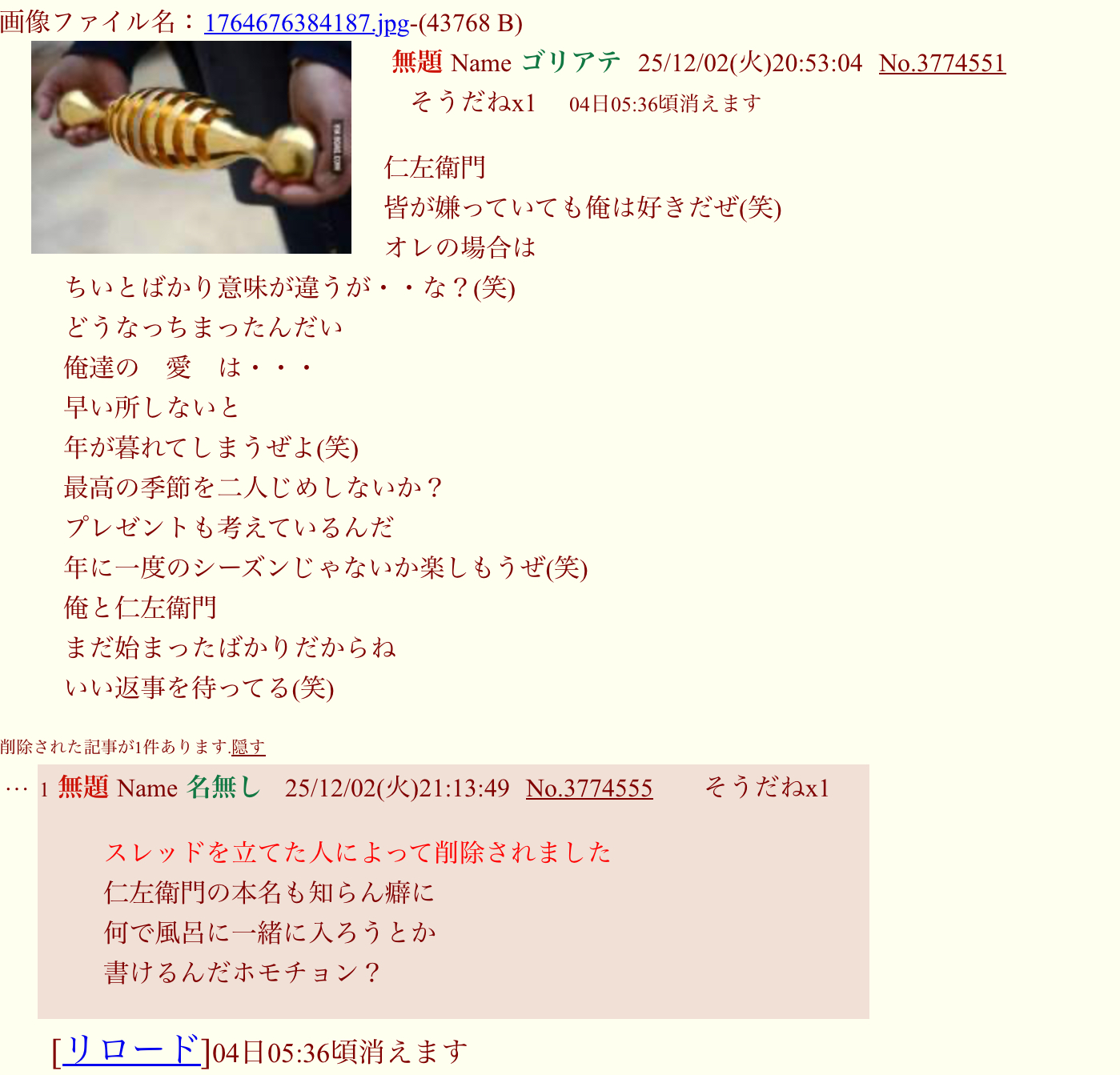 | … | 2スレ主だけどName名無し 25/12/02(火)21:29:53No.3774559+俺がホモチョンバカにしてると |