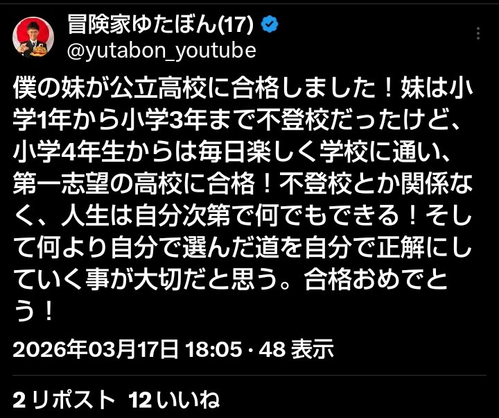 | … | 2無題Name名無し 26/03/18(水)17:49:27No.3787901+誰かゆたぼんにそれが普通なんだよって教えてあげて欲しい |